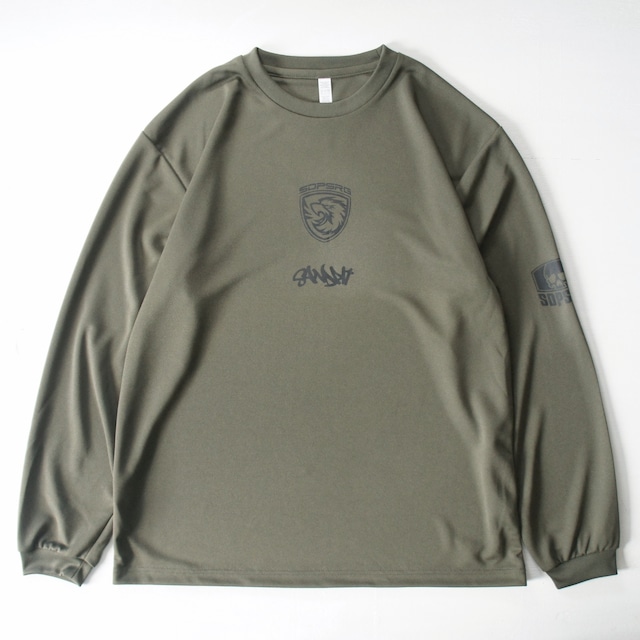オールシーズン使えて汗抜けも良く速乾ドライ生地でスポーツ、トレーニングから日常使いにも使える長袖です。 <ドライアスレチックファブリック> ドライ素材において快適で適度なしっかり感をできる生地のボリュームを実現しています。 肌に接する側はメッシュ構造になってます。 生地質や生地厚は、Tシャツと同じです。 <ドライ機能> ベーシックな吸水速乾機能を保有しており汗冷えを防ぐとともに快適な着心地が持続します。 <紫外線カット> UPF30+ ■カラー:オリーブグリーン ■素材:4.4ozポリエステル100%■ベトナム製■プリント自社工房■洗濯可 ■サイズスペック XL:着丈74・身幅56・肩幅50・袖丈62cm ■生地やプリント面は、熱に大変弱いのでアイロン、乾燥機などはご遠慮下さい。 プリント保護の為、お洗濯の際は、裏返しでお願いいたします。柔軟剤や漂白剤の使用もお控え下さい。 ※イベントブース販売と在庫を併用しているため売り違いが発生してしまい 在庫管理が遅れる場合がございます。